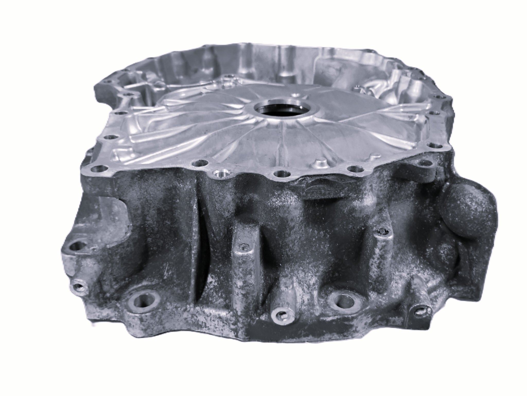 This good used front case half bell housing fits 2008-2010 AWD Nissan Rogue 2.5L JF011E RE0F10A CVT transmissions. Casting 214163.