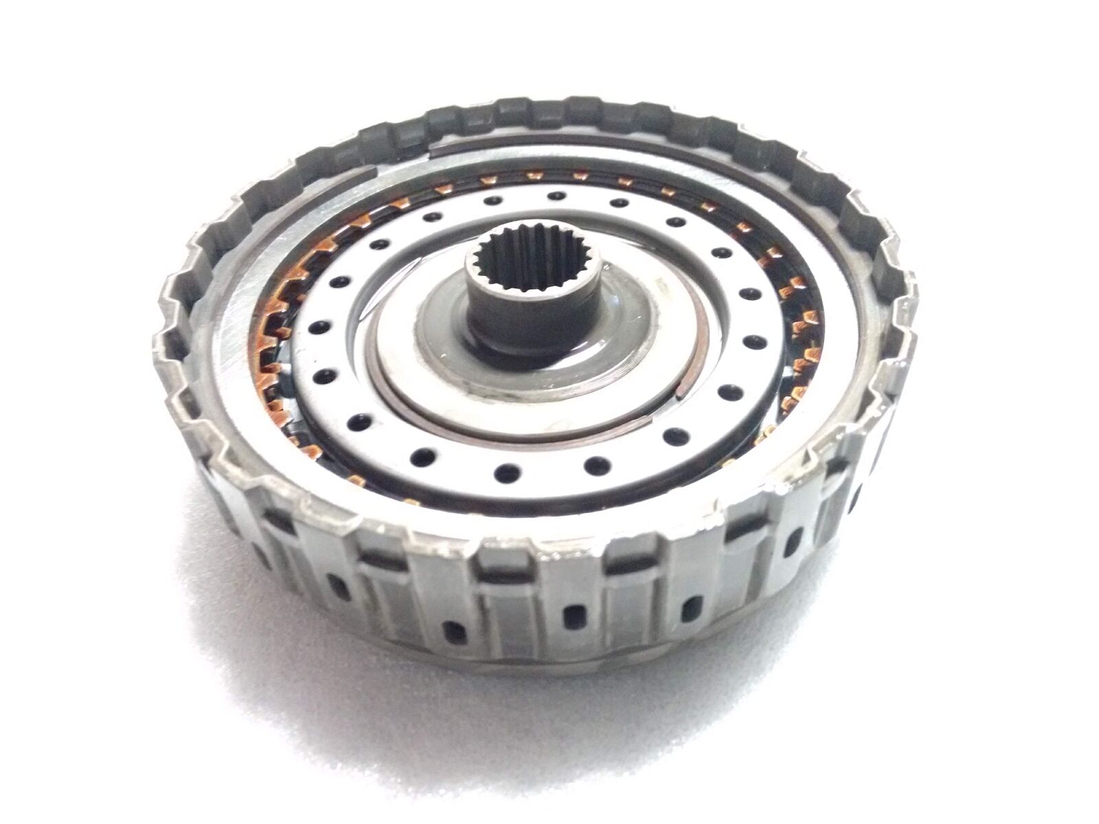 This good used clutch drum fits Nissan JF009E RE0F08A CVT transmissions 2007-2008. Uses aluminum piston. Has 4 oil feed holes. Loaded drum with plates as pictured.